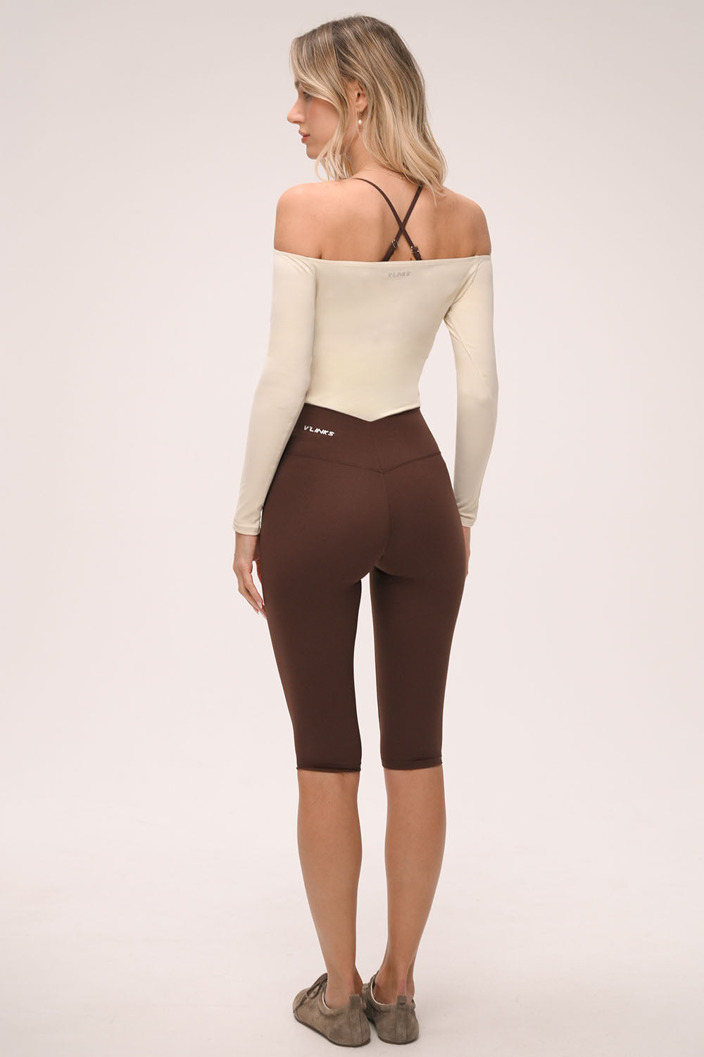 The V Capri Leggings feature a high-waist V-cut silhouette with a clean, smooth finish and a double-layer waistband for strong core support and a sculpted look.