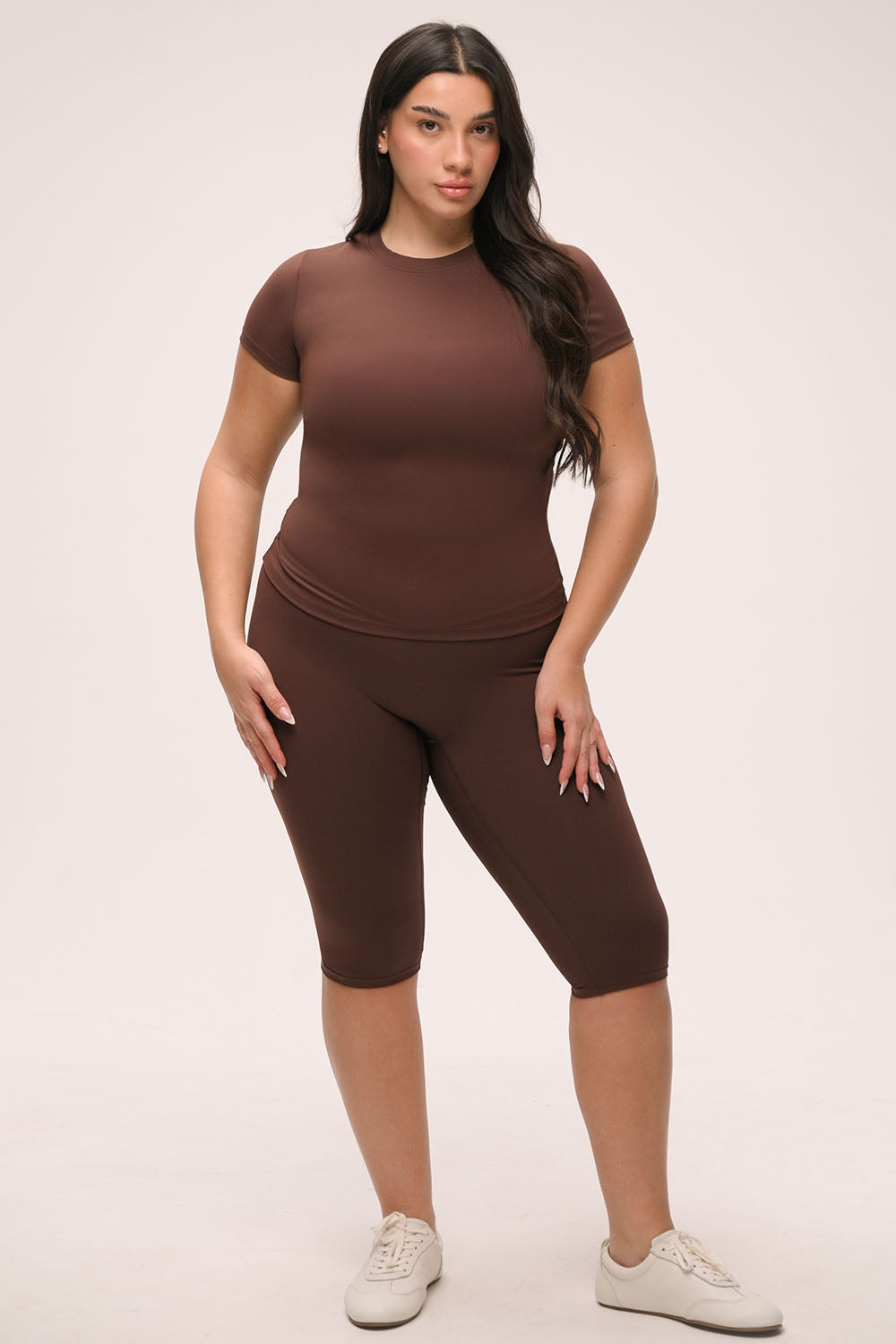 Crafted from a premium sports fabric that feels like a second skin, these leggings offer exceptional softness, breathability and stretch. The capri length, longer than biker shorts and shorter than 7/8 leggings, creates a sleek leg line and a modern athletic aesthetic.